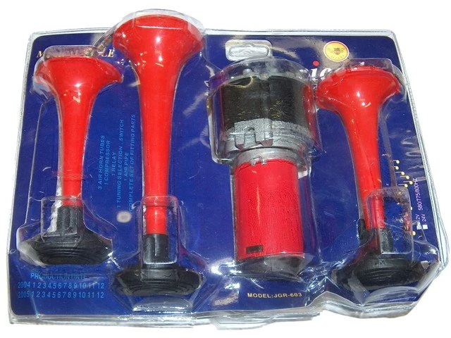 Autólégkürt (3 szólamú) kompresszorral 12 V. Csomagolás: bliszter. A csomagolás tartalmaz relét.