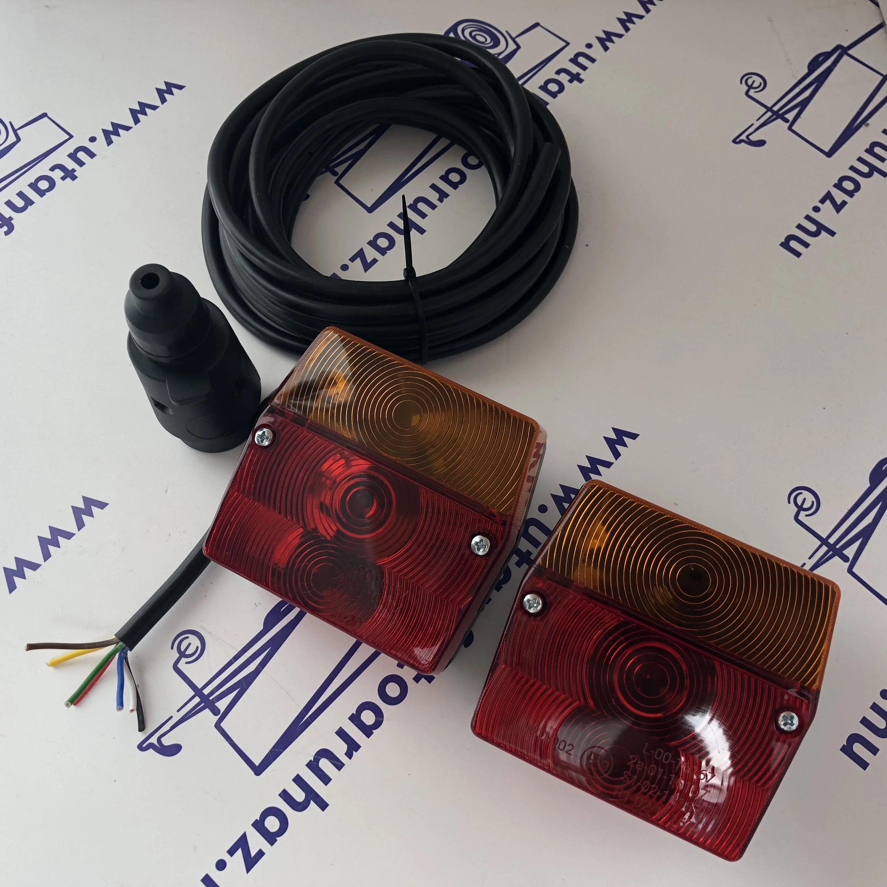 A lámpa szett 5 méter vezetékkel van csomagolva, így alkalmas 3 - 3,5 méter plató hosszúságú utánfutóhoz.