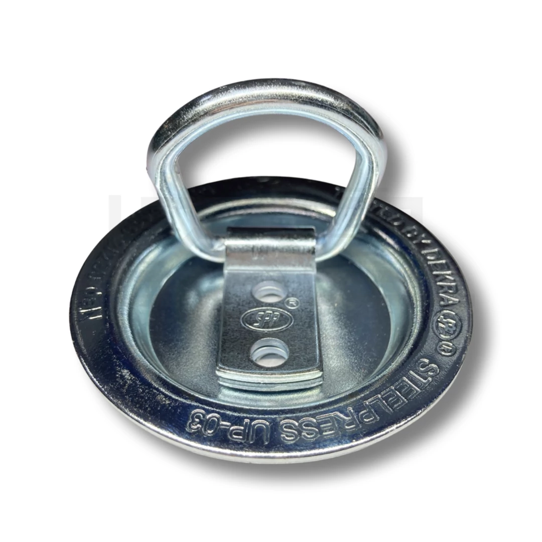 UP-03 rakományrögzítő fül, a szállított rakomány rögzítéséhez, lecsukható szem, süllyesztett, kerek - nem töri meg a pótkocsi sík padlóját.