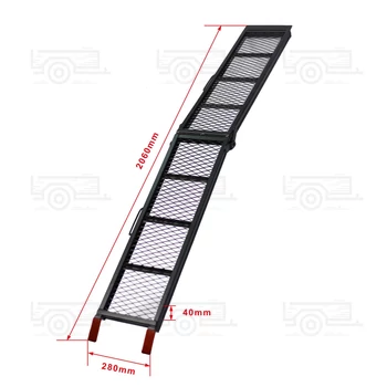 • Rámpa maximum 340 kg-ig • Összecsukható plusz fogantyúk • Max. rakodási magasság 76 cm, szélessége 28 cm • Felső oldal acélhálóval borított • Gumírozott érintkezési felületek