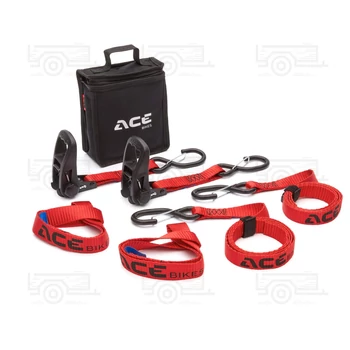 | Az Acebikes Ratchet Pro tökéletes minden típusú motorbicikli rögzítéséhez. A műanyaggal bevont erős kampók rugalmas záróklipszekkel vannak ellátva a fokozott biztonság érdekében. A készlethez tartozik két hurok, tépőzáras szíjak és egy praktikus hordtáska. | |