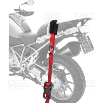 | Ez az Acebikes 200 cm hosszú, extra erős poliészter heveder prémium nehéz teherbírású racsnival tökéletes a nehéz motorok biztonságos szállításához. A horganyzott, műanyaggal bevont kampók, a mesterséges juhgyapjú burkolat és a 900 daN teherbírás garantálják a motor védelmét és stabilitását. | |