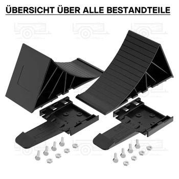 Két darab fekete kerékék utánfutókhoz és egyéb járművekhez, melyek 220 x 90 x 110 mm méretűek és 1.600 kg teherbírással rendelkeznek. Tartalmaz 2 tartót és csavarokat, amelyek megkönnyítik a tárolást és a könnyű hozzáférést. |