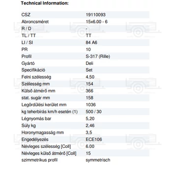 Fűnyíró traktor gumi 15x6.00-6, tömlő nélkül szerelhető