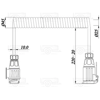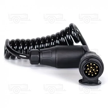 13 pólusú spirálkábel 12 V feszültséghez, dugóval és aljzattal, 3 m hosszban. Rugalmas, időjárásálló és biztonságos csatlakozás utánfutókhoz és járművekhez.
