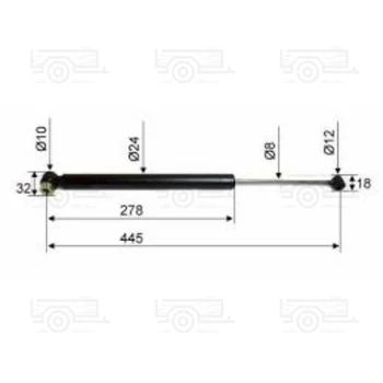 ház átmérő: 24 mm ház hossz: 280 mm teljes hossz: 470 mm furatközép távolság: 445 mm teherbírás: 700-1000 kg