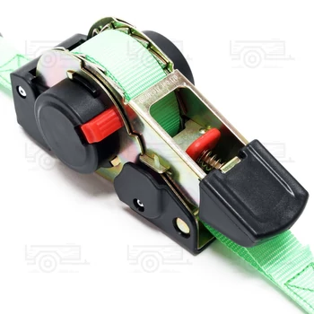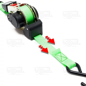 Az automatikus rögzítőheveder 320 daN szakítószilárdsággal, 1,8 m hosszúsággal és 25 mm szélességgel készült, innovatív önfelcsévélő mechanizmussal. Az S-kampók és a strapabíró PES anyag egyszerű és hatékony rakományrögzítést biztosít. |