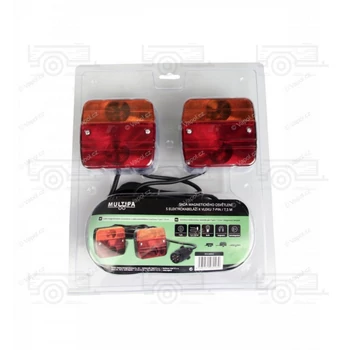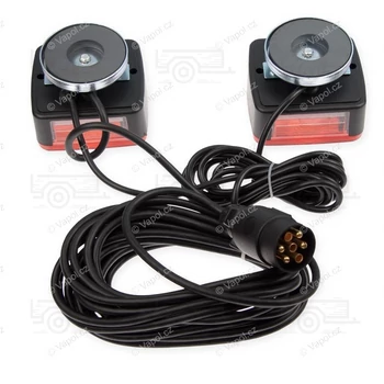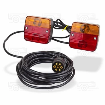 Kiváló minőségű lámpa utánfutóra, pótkocsira. A lámpa szett bekötést nem igényel, így azonnal használtba vehető az utánfutón. Komplett lámpa szett mágneses lámpákkal. A mágneses talpaknak köszönhetően akár ideiglenes szállításnál is nagy segítséget nyújt. Teljes vezetékhosszúság 7, 5 méter. Maximális szélesség 2,5 méter. Így is ismerheti: utánfutó komplett lámpa szett, utánfutó lámpa, utánfutó világítás rendszer, utánfutó komplett elektromos rendszer, pótkocsi világítás |