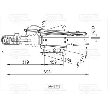 Vonórúd átmérő: 50 mm Típusa: 251G Alkalmazott kapcsolófej: AK301 Illeszkedő fékszerkezet: 1637/2051 Anyaga: Acéllemez Teherbírás: 1550-3000 kg Max. terhelhetőség: 3000 kg