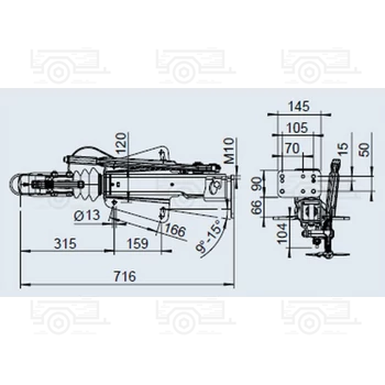 AL-KO ráfutófék egység 251S, 2700 kg, Ø 160/200 mm fékdobbal szerelt utánfutókhoz, vonórúd alá építhető, orrkerék tartóval