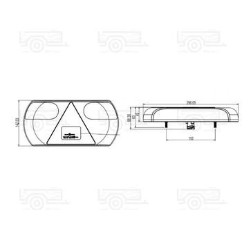 | LED mennyiség 32 Ház: ABS Rögzítés: csavarral Funkciók: helyzetjelző, féklámpa, tolatólámpa, irányjelző, ködlámpa Feszültség 12 V/24 V méret: 300x150x80 mm súlya: 760 g Vezeték: 500 mm | |