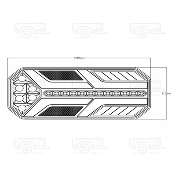 LED mennyiség 67 Ház: ABS Rögzítés: csavarral Funkció: stop, irányjelző, tolatólámpa, ködlámpa, reflektor Feszültség: 12 V/24 V Méret: 240x120x70 mm, Súlya: 460 g Vezeték: 250 mm |