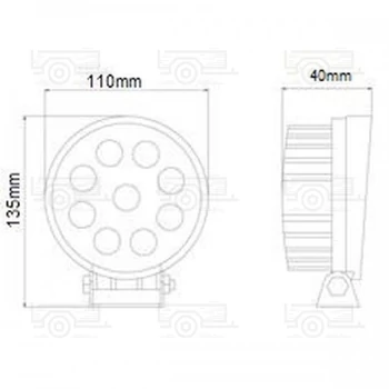 0076S munkalámpa, 9 LED diódával, 24 W teljesítménnyel, 1430 lm fényárammal, 12/24 V feszültséggel, IP67-es védettséggel, könnyen telepíthető, csavaros rögzítéssel.