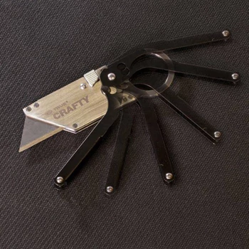 A Crafty egy összecsukható kés, amelyben a kés karabinerrel rögzíthető. Kompakt, összecsukható és egyszerűen felcsatolható ruhára, hátizsákra. A kiengedő gomb segítségével tudjuk biztosítani az élvédelmet. A pengéje könnyen cserélhető, s tartozékként 2 db pótpenge is jár hozzá. A fekete titánium bevonatú markolathoz 420-as minőségű rozsdamentes acél fej tartja a pengét. Vásároljon minőségi és megbízható termékeket webáruházunkból! |
