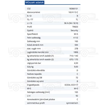 REIFEN 165 R 13 C 96 N (94 / 92 R), TL, TR603, M+S SECURITY
