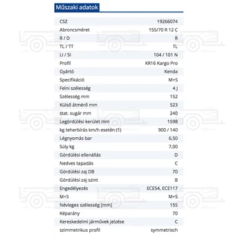 Gumiabroncs 155 / 70 R 12 C