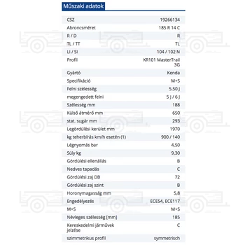 REIFEN 185 R 14 C 104 / 102 N, TL, KR101 MASTERTRAIL 3G, M+S