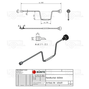 BÜNTE kézi hajtókar, 660 mm, 19-es kulcsnyílással, minden emelhető lábhoz alkalmas