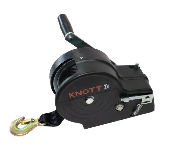 KNOTT kábelcsörlő, fekete, húzó terhelés 1150 kg, 50 mm x 7 m hevederrel, 4:1/8:1 sebességcsökkentés.