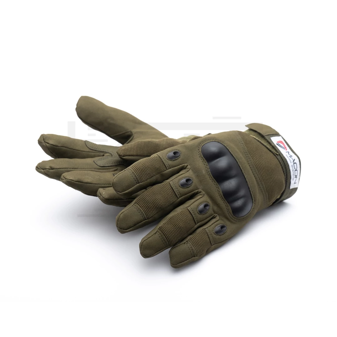 A kézfejen protektorbetéttel és műanyag erősítéssel, az ujjközöknél kötött strech betéttel, a tenyerén erősítéssel van ellátva.