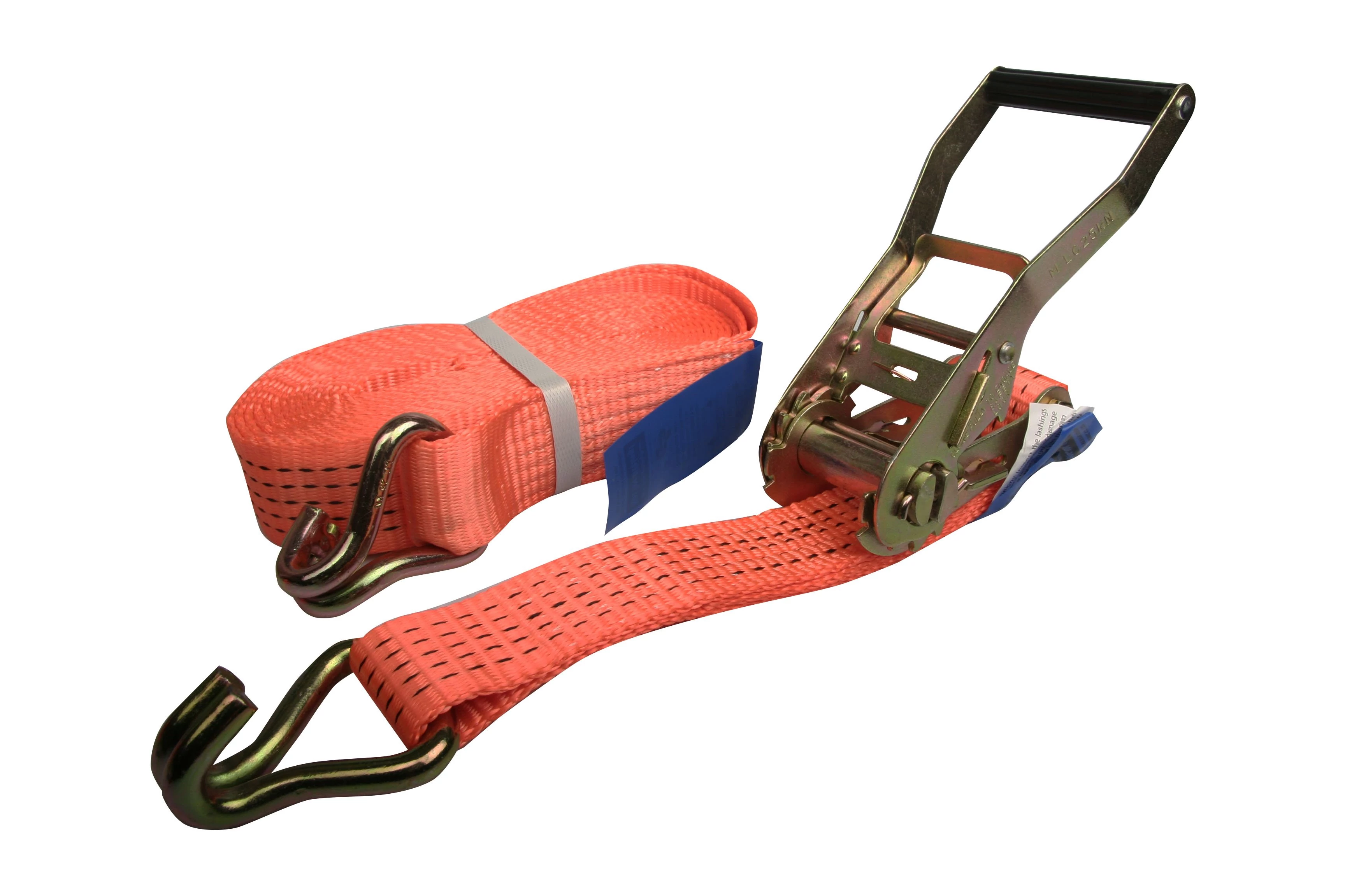 Használat: A kampót rögzítse a megfelelő helyre a jármű rakodófelületén. Húzza át kézzel a hevedert a racsnin úgy, hogy a heveder teljesen áthúzódjon a rakomány felett - ezzel megakadályozva a racsni eltömődését a tág hevederrel, majd a racsniskarral meg kell feszíteni a hevedert úgy, a hevedert legalább két és félszer átvezetjük a racsnin. A heveder meglazításához a rugót meghúzzuk a biztosíték elengedéséig és a racsniskart 180 ° -kal elmozgatjuk az úgynevezett kioldási helyzetbe.