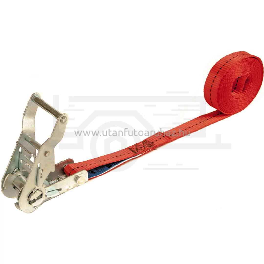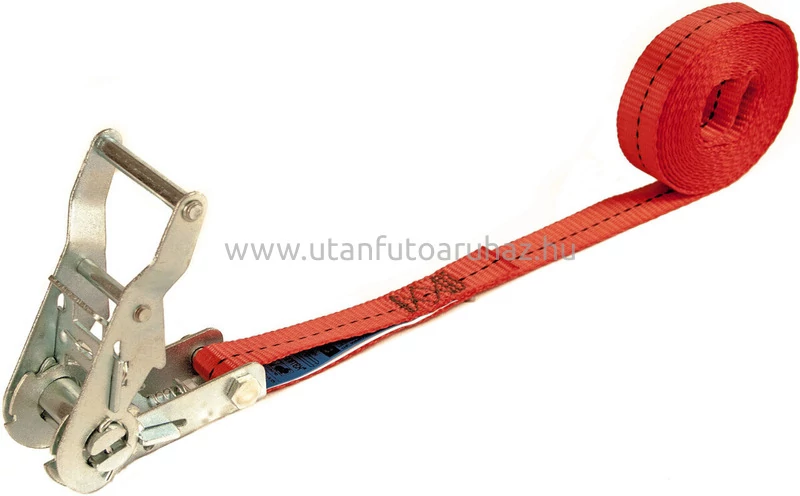 Rakományrögzítő heveder, tartós használatra tervezett racsnival, melynek minden alkatrésze fém.
