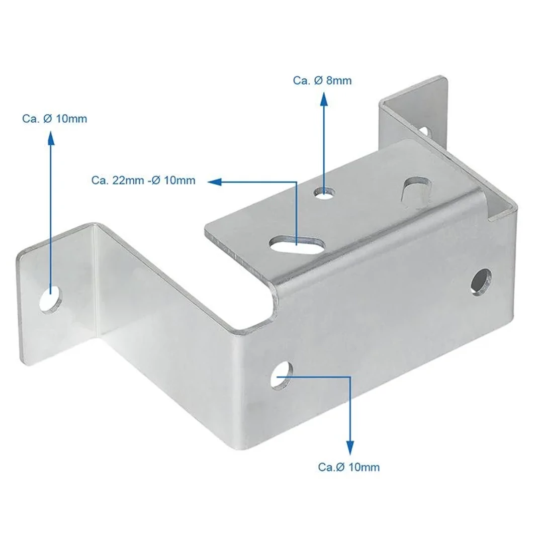 Stema utánfutókhoz, ahol a segédalváz nincs egy síkban az oldalfalakkal, így a tartó konzolt kell alkalmazni, amire a támasztóláb bilincset szereljük.