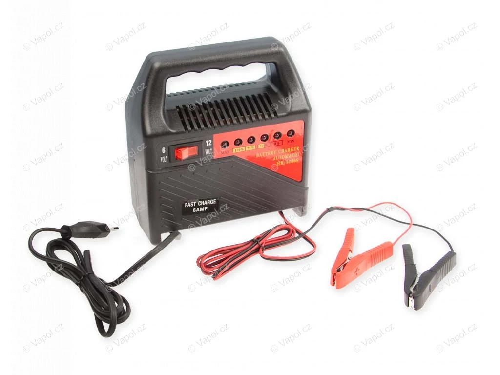 Hordozható automata akkumulátor töltő, 6V / 12 V, 6 A töltőáram. Táp 220 V. 15 – 60 Ah kapacitású akkumulátorokhoz.