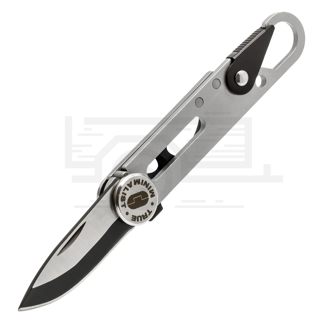 | jellemzők | designer kés és multifunkciós szerszám • karabíner, sörnyitó, kicsi/nagy laposfejű csavarhúzó, reszelő, damilvágó, fekete titánréteggel bevont, rozsdamentes acél kés • könnyű, vékony és kis helyen is elfér |