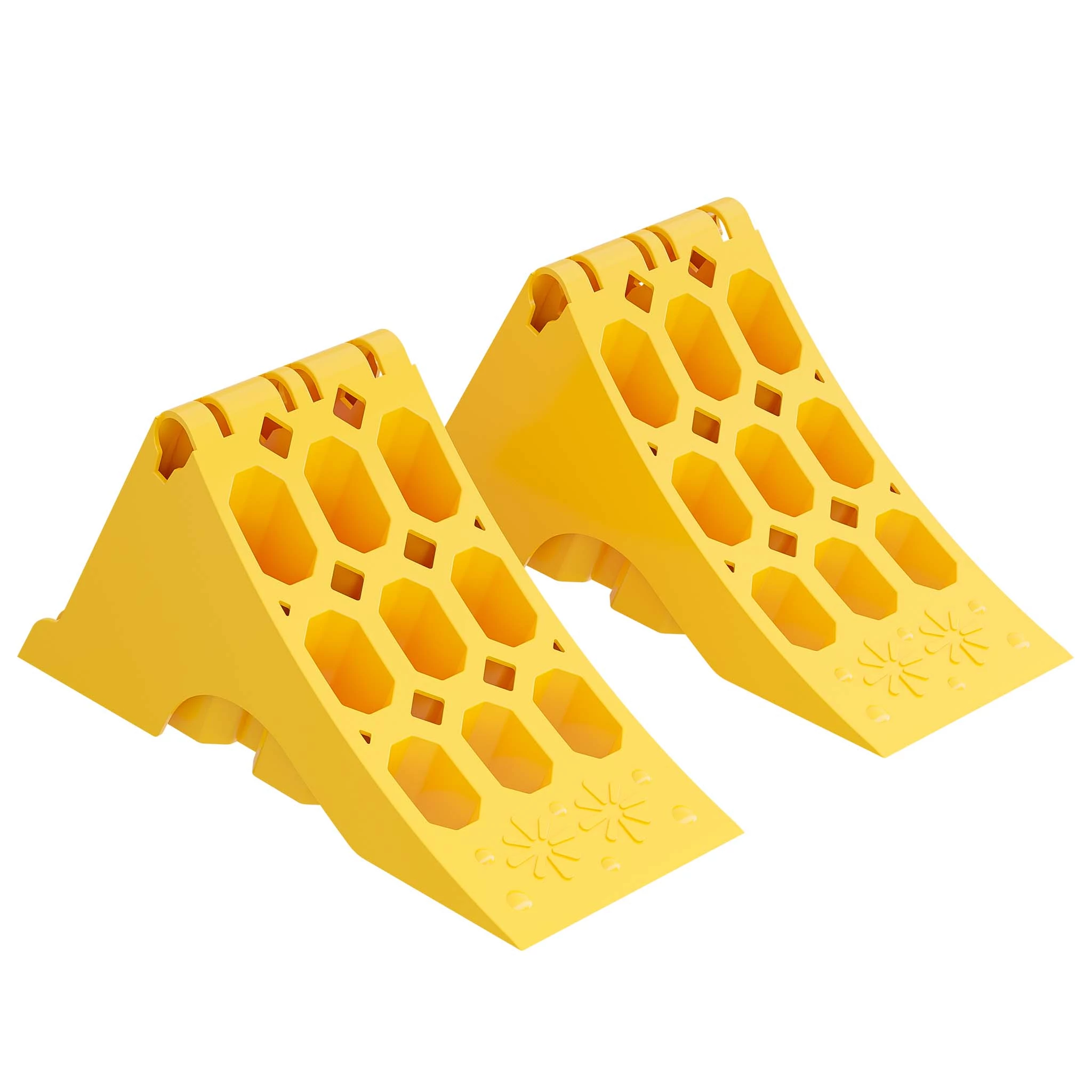 Ezek a robusztus HDPE műanyagból készült kerékékek megbízhatóan biztosítják járművek és utánfutók rögzítését lejtős vagy egyenetlen talajon. A 393 x 160 x 193 mm méretű ékek akár 5 tonnás teherbírással is rendelkeznek, és 160 mm széles gumiabroncsokhoz ideálisak. A sárga szín biztosítja a jó láthatóságot, míg a csúszásmentes felület megakadályozza a jármű elmozdulását.